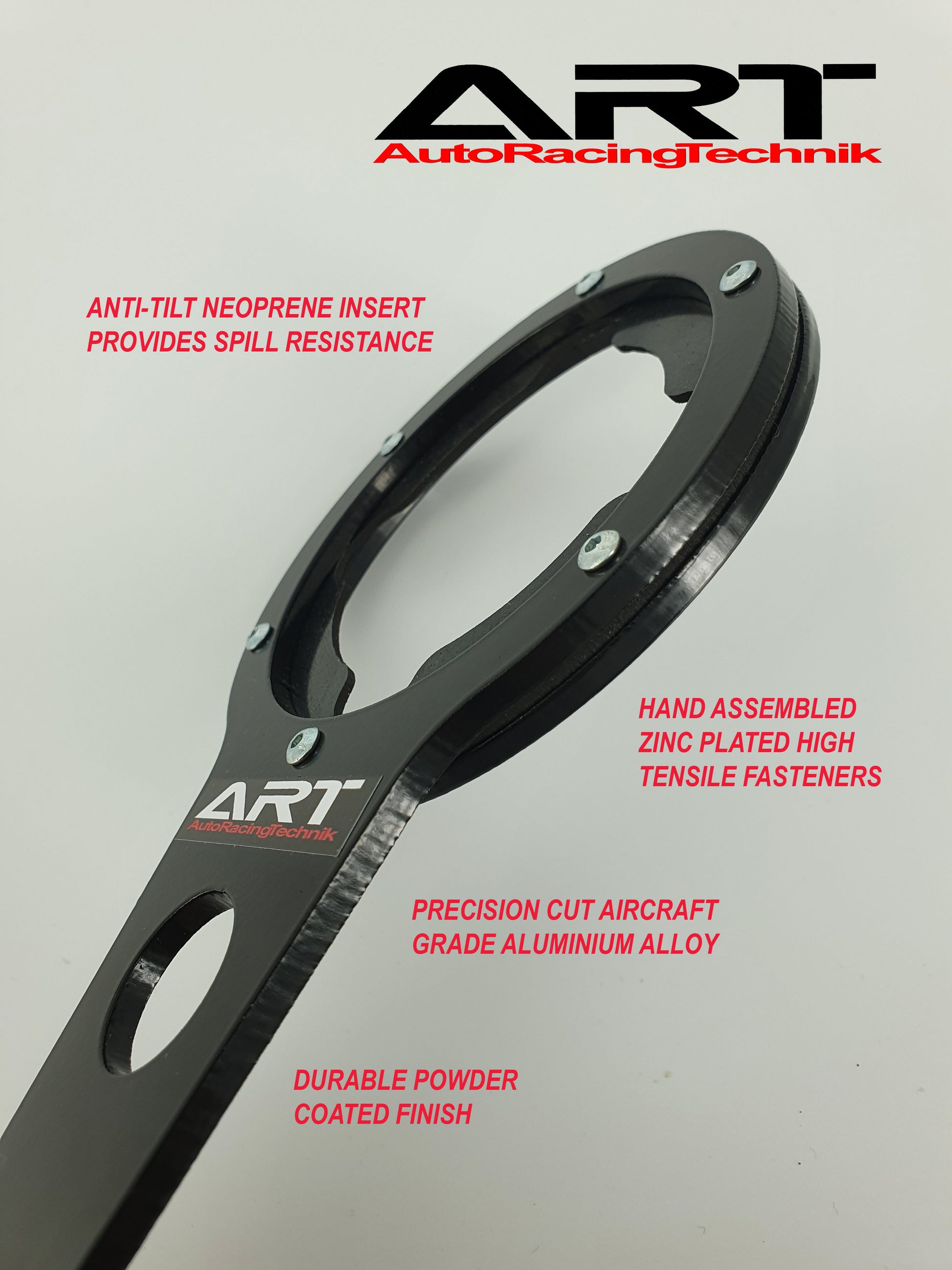 - Cup holder arm precision cut from corrosion resistant aluminium alloy